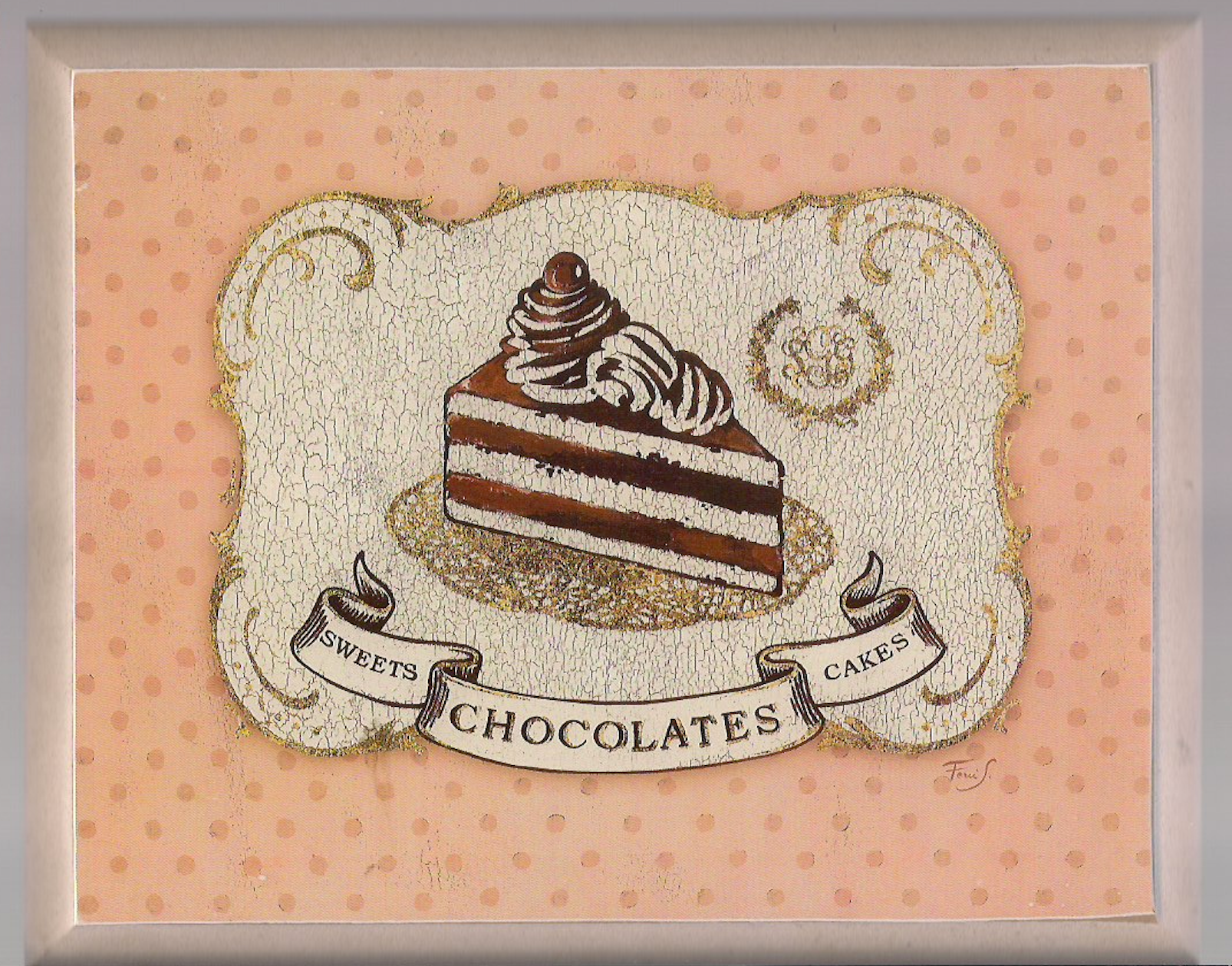 Quadro in legno "Sweets chocolates cakes" Dimensioni: 26x21 cm.